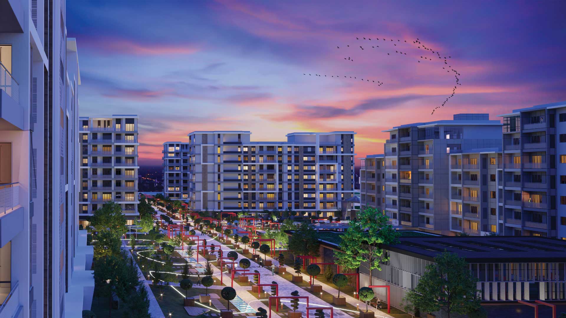 При возведении комплекса используются передовые технологии в проектировании и высококачественные стройматериалы, чтобы здания были максимально надёжными и долговечными. Окружённый обильной растительностью и ограждённый от дорожного шума, он существует независимо от всего города, при этом находясь в центре самого амбициозного строительного проекта страны на сегодняшний день. Жилой комплекс оснащён полным пакетом обслуживающих систем.